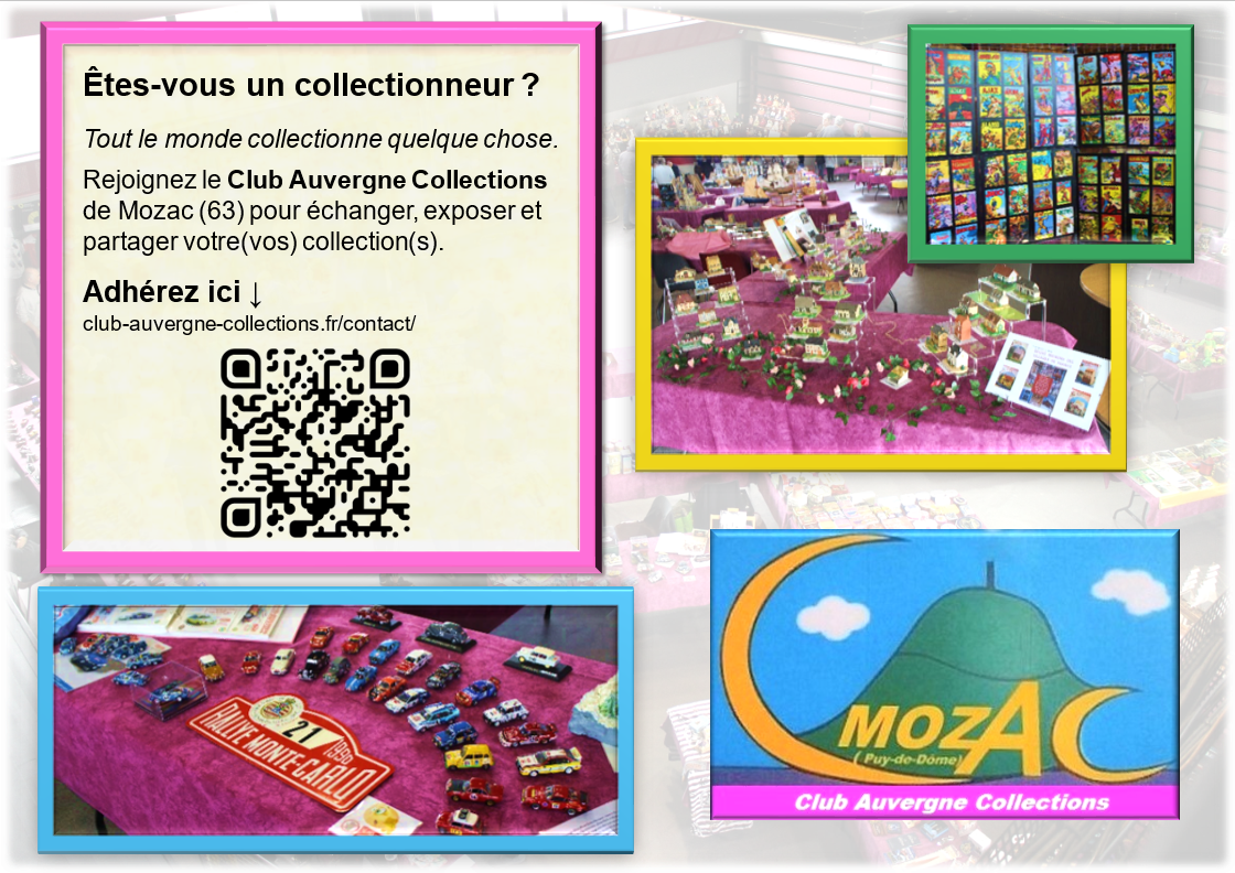 Vous désirez que le Club Auvergne Collections de Mozac (63), vienne exposer chez vous ?