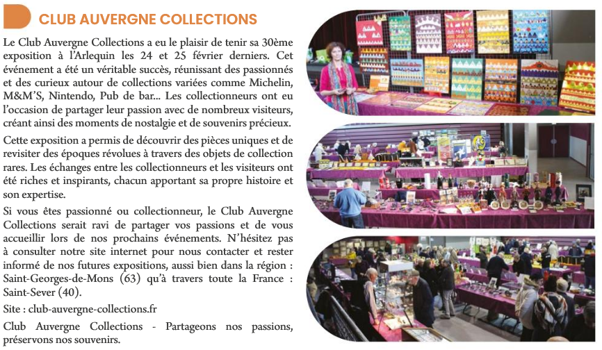 Une année 2025 riche en activités pour le Club Auvergne Collections Le samedi 10 janvier 2026, le Club Auvergne Collections a tenu son Assemblée Générale ordinaire à la Maison des associations de Mozac. Ce rendez-vous annuel a permis aux membres de revenir sur une année 2025 particulièrement dynamique. Tout au long de l’année, le club…